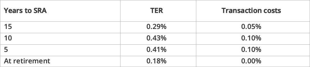 The Annuity lifecycle arrangement is a legacy lifecycle arrangement, for the period covered by this Statement, annualised charges and transaction costs are set out in the following table.