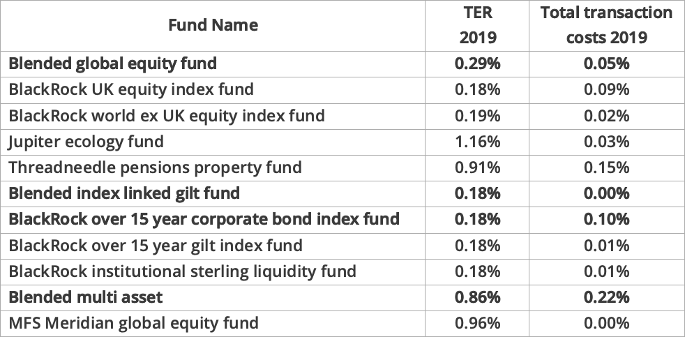 - the fund with lowest annual member borne costs – this is the Blended Index Linked Gilt Fund